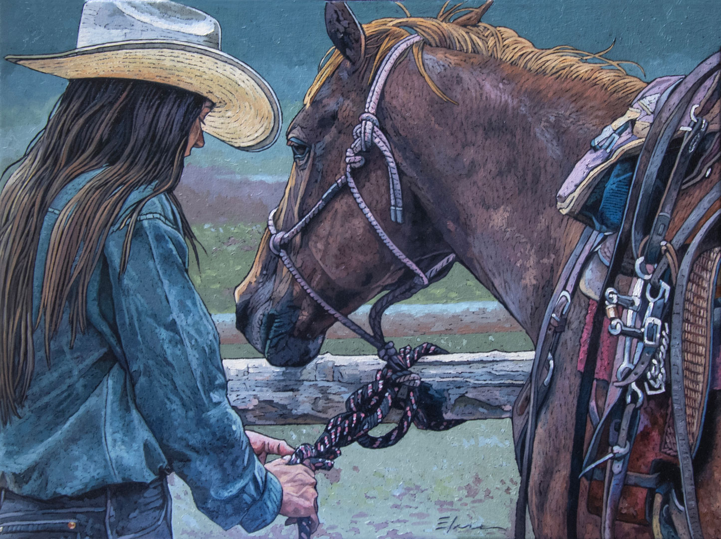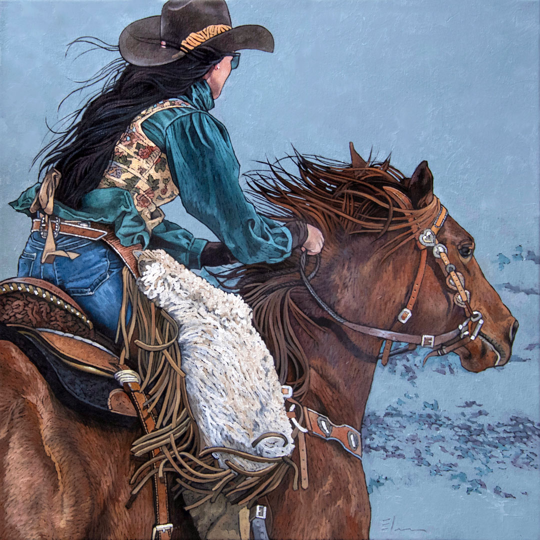 Elise Mahaffie received her B.F.A. from Syracuse University. She also completed a three year masters program at the Compass Atelier in Maryland. She currently lives in Jackson, Wyoming where she works as an artist as well as art director for Jackson Hole magazine. Her long career as a graphic designer has had a major influence on her stylized paintings. Being a graphic designer for a good part of her life has definitely influenced the way Elise interprets shapes and how she see things. Most of her work is cropped in tight which gives the paintings a somewhat graphic composition. She loves that it gives the viewer a very personal feeling of what is happening within each painting as well as the power to create ones own story. Elise has been involved in numerous national shows throughout the years. She has been recognized in Southwest magazine as an “Emerging Artist to Watch” as well as receiving first place in the wildlife category for Artist magazine’s “Annual Emerging Artist Competition”. She also received the Best Associate Award and 2nd Place in the Women Artists of the West past two annual shows. She was just recently accepted into the Society for Animal Artists and juried into their 65th Annual Exhibition. She is represented by West Lives On Gallery in Jackson Wyoming.