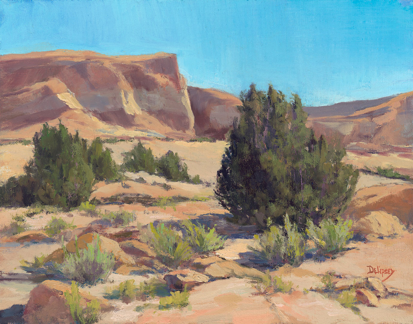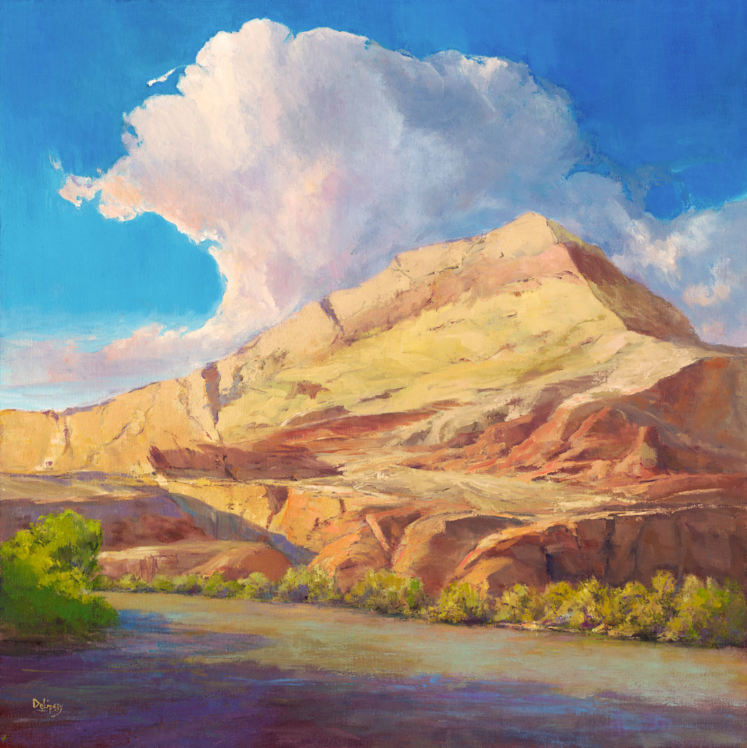 With a deep love of the land, J.M. DeLipsey’s paintings embrace the nature through light, color and presence – spaces that invite viewers to slow down, breathe and see. Jan is recognized as one of the foremost women artists working in the Western-landscape genre today. A Master Emeritus member of the Women Artists of the West, she has built a national reputation for her luminous oil paintings of Monument Valley, New Mexico and the open landscapes of the American West. Her work is rooted in Western landscapes – mesas, desert skies, interplay of light and shadow on open land. Her work is celebrated for its refined compositions, subtle color harmonies and an ability to evoke both the beauty and the stillness of the land. Her paintings speak to an intimate reverence for place. Her ability to see what many might overlook: relationships of form, color and atmosphere quietly invite a viewer in. Collectors value her paintings for their timeless quality and deep connection to the Western landscape and way of life. When viewing a DeLipsey painting, you will feel more than scenery – you’ll feel a moment. Whether it be a twilight sky above sweeping land, a fleeting cloud over a mesa, or muted tones of dusk settling into earth – her paintings bring an experience. Her work is held in private collections nationwide, valued for both artistic merit and investment potential. For availability of work, visit the Gallery Page, contact her or contact Thunderbird Foundation Gallery, Mt Carmel, Utah.