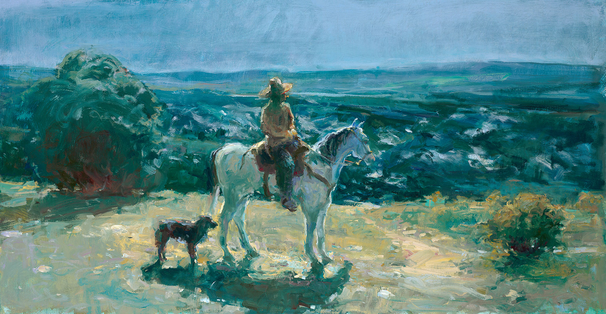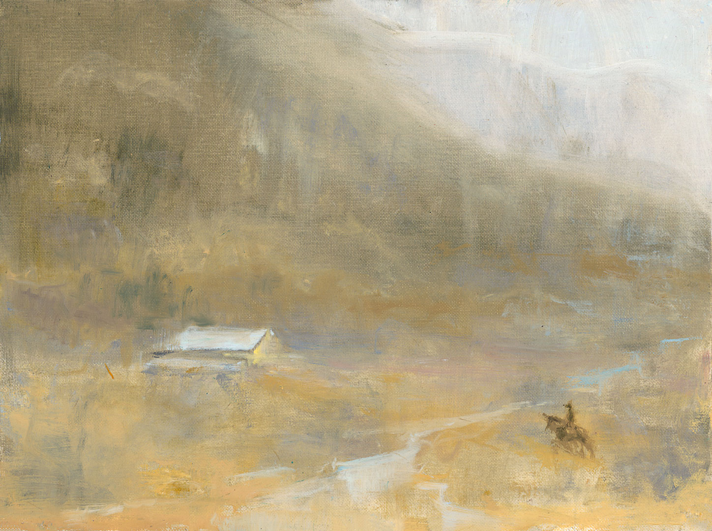 Leah Lucas was raised in southern Alberta, Canada. From early childhood she reveled in the freedom to explore her world on horseback. She would forever be informed by miles of flat unending 350-degree views, covered with expansive blue skies, butted against the imposing Rockies in the distance. Developing a deep connection with the natural world, fostered by a profound love and understanding of horses, led to her life’s passion. Leah has spent her life raising, training, and showing these magnificent beasts; developing a thriving practice devoted to healing horse with physical and/or behavioral imbalances. Working with feel and light touch; enabled her to receive subtle equine energies that deeply guided her responses, bringing the most favorable results. Leah’s unique vernacular and system brought hr great recognition, and respect. The demand for her services allowed her to travel extensively in the U.S. Leah is strongly drawn to Taos. For her, Taos exudes intimacy mystery and joy. “it forces the brush to move across a canvas with deliberation – intent on purpose, with little choice but to express beauty.” Taos is enchanting – it draws you in like no other place. we are continually embraced by the burgeoning soft-capes, vast hard edges, superlative light, distinguished people and illustrious environs.