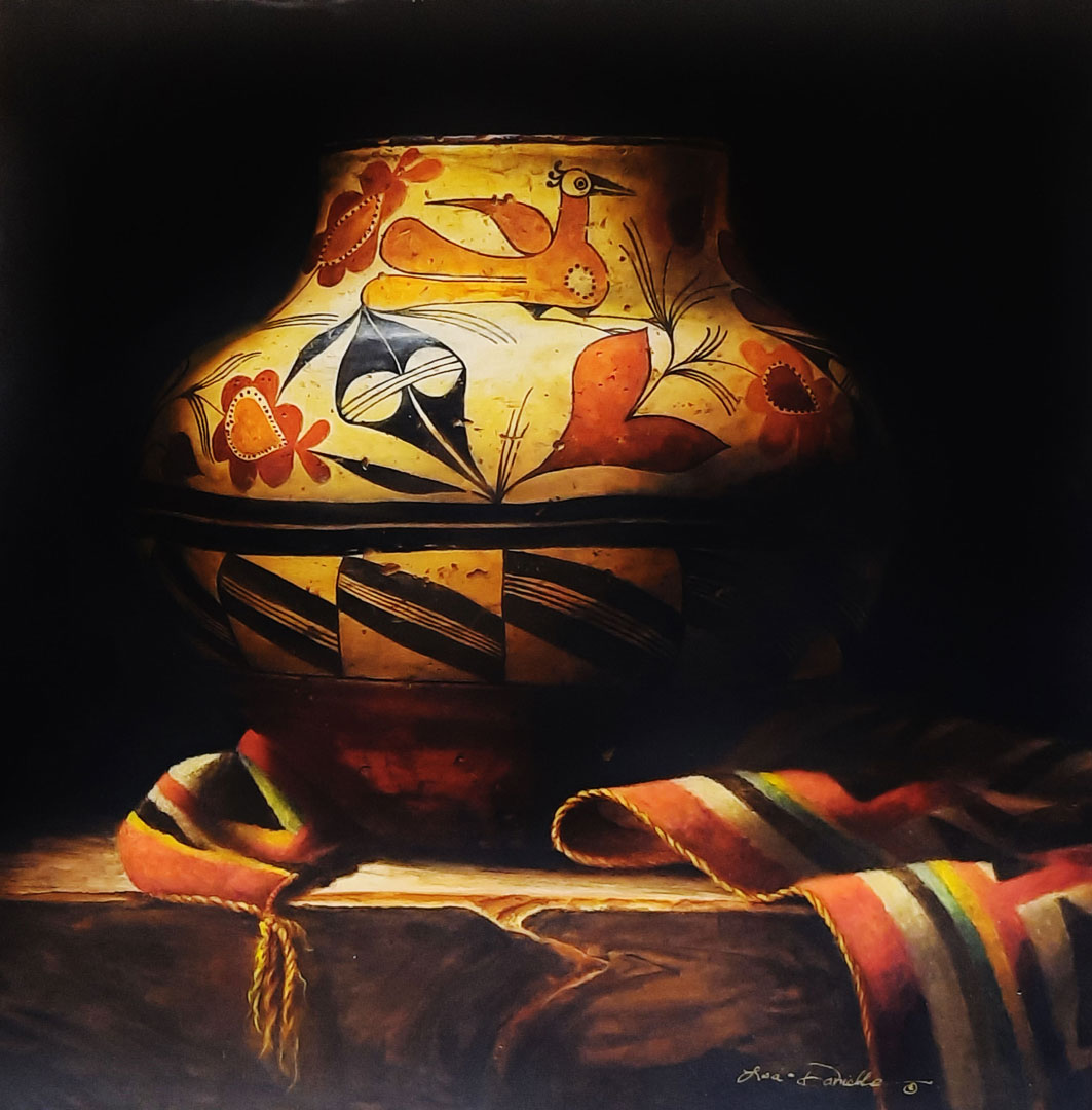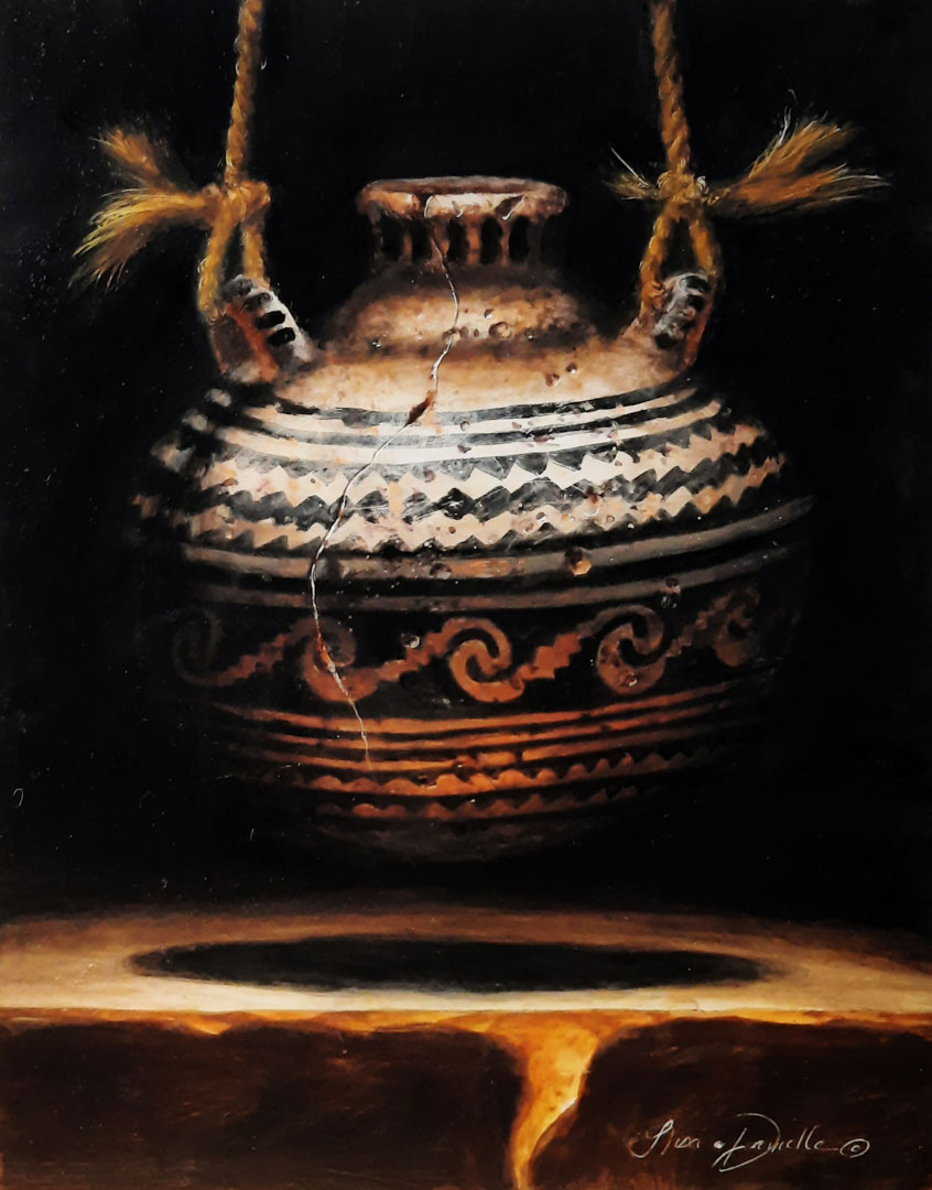 After a devastating studio fire early last winter, Lisa hung a wooden sign that read FAITH! over the ruins, and began focusing on the positives. Nearly a year later, she paints in her bright new space under that same sign with a renewed spirit, focusing on the Biblical phrase “Beauty from ashes”. She credits her 5 decades of wonderful collectors, and her steady relationships with her galleries, museums, and show directors that supported her while all her creativity was spent rebuilding her work life. Now that Lisa finally has a brush in hand, quality over quantity will also be a challenge for an artist whose work is always in demand, but reflects a renewed desire to make every painting count. As in her life, she wants each painting to be a positive message of survival, renewal, and honoring the past to better shape the future.