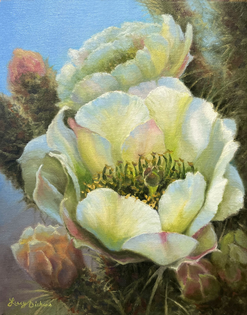 Before Lucy Dickens puts brush to canvas, she personally experiences them. She is drawn to light and shadow and the interplay within. Her awardwinning paintings are unique— she’s also a storyteller of fine art. Her paintings focus on landscapes, wildlife, and botanicals. Each piece comes to life as she shares her writings, seeking to bring you along on the journey with her. Not only are the sights, sounds, and experiences expressed through her work, but her deep faith is also woven through her life and creativity. While her Southwest paintings are the most collected, she loves traveling on a wonderful adventure and then returning to complete a new painting series. Lucy’s fine art paintings have been published regularly in media, including several interviews and news segments. Her award-winning paintings are highly collected nationally and internationally, both in personal and corporate collections. Lucy began her journey in sketching and then acrylic painting before transitioning to oil in 2005. She has mastered her own unique style over the years—but not without in-depth training. She directed her art education, first by taking workshops, then continuing learning through expert one-on-one instruction from seasoned artists and classes through the Scottsdale Artists’ School. “From the first time I put brush to canvas, I knew this is what I was supposed to be doing. This is who I am,” she expresses. The more she paints, the more a deep passion and sense of purpose fills her. “This is my calling,” she says.