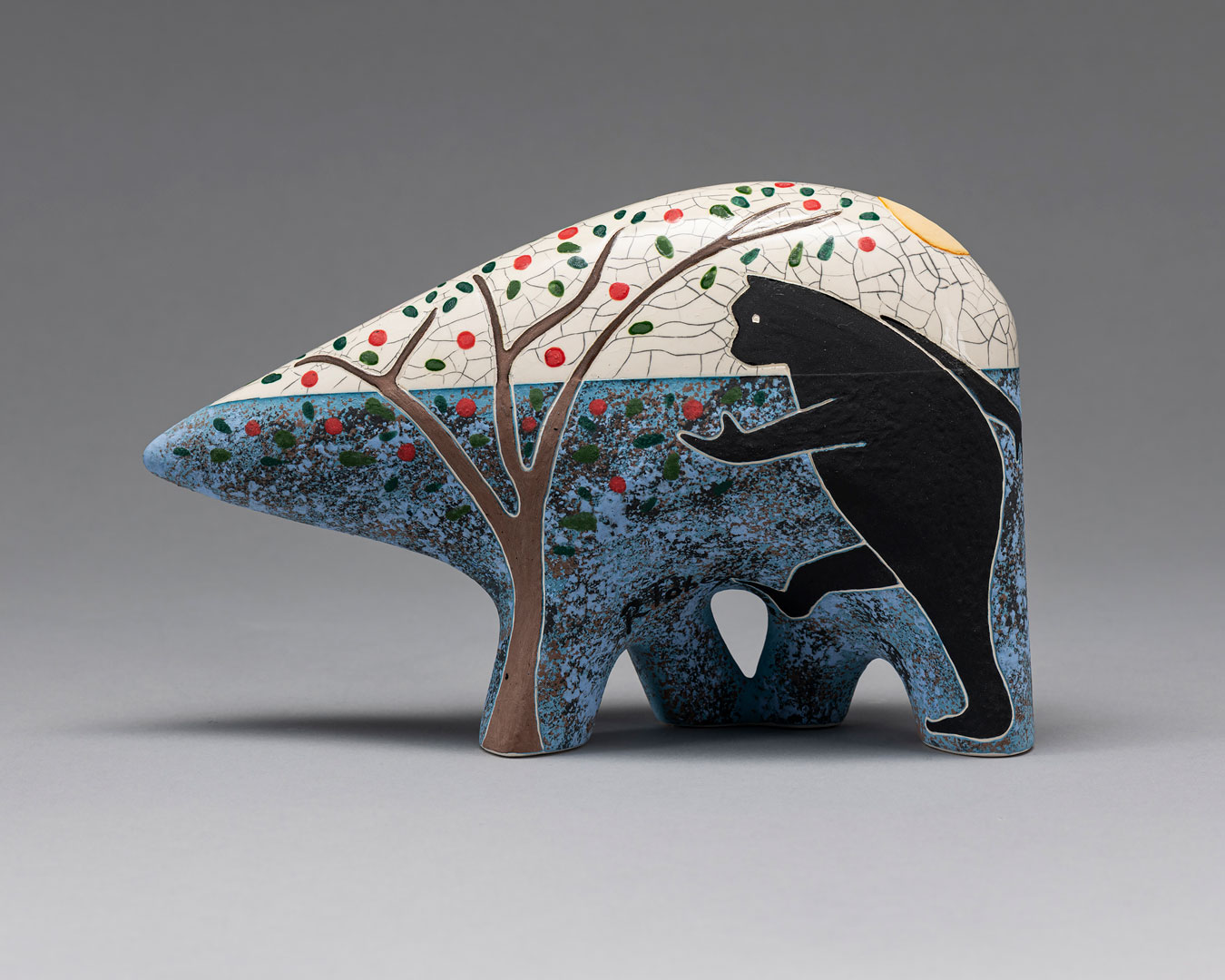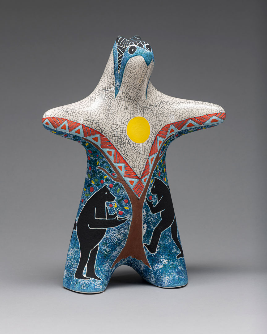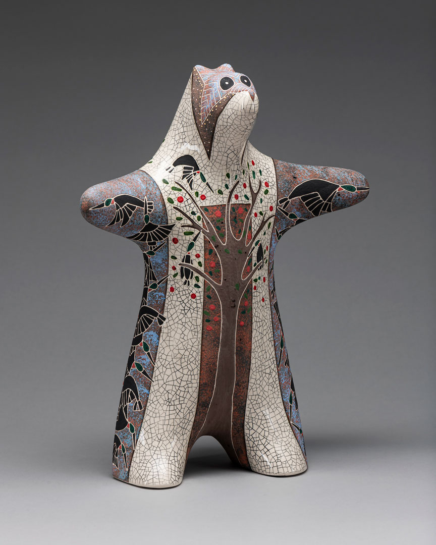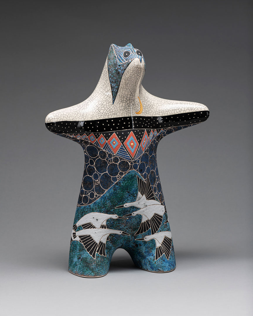 Rebecca’s high school art teacher told her that she was not good enough to major in art in college, instead she received a Bachelors and Master’s degree in Theatre Arts, focusing on scene design, stagecraft and props, creating art on a large scale. She joined her late husband in collaboration in 1985. Upon his death in 2006, she continued the work that they had pioneered as a solo artist. Nature inspires her work. After 40 years in the studio, she has a passion for exploring new images in both bronze and ceramic and loves the moment a ceramic sculpture comes out of the kiln because, as she says, “It’s like Christmas morning every time.” These days Rebecca and her rescued Springer Spaniel, Dexter, take long walks in the vast open space around her home in the country outside Santa Fe, NM where they often see mule deer, coyotes, rabbits, snakes and lizards and all kinds of birds. Rebecca has participated in Cowgirl Up! since 2013 winning several awards for 3-D art as well as the Museum Purchase Award. Her sculpture is in numerous public and private collections including the John and Mabel Ringling Museum of Art, Sarasota, FL, The University of NM Cancer Center, Albuquerque, NM, The Booth Museum, Cartersville, GA, The Hockaday Museum of Art, Kalispell, MT, The Desert Caballeros Museum, Wickenburg, AZ, The Phippen Museum in Prescott, AZ and the Lincoln Center of the Performing Arts, Fort Collins, CO.